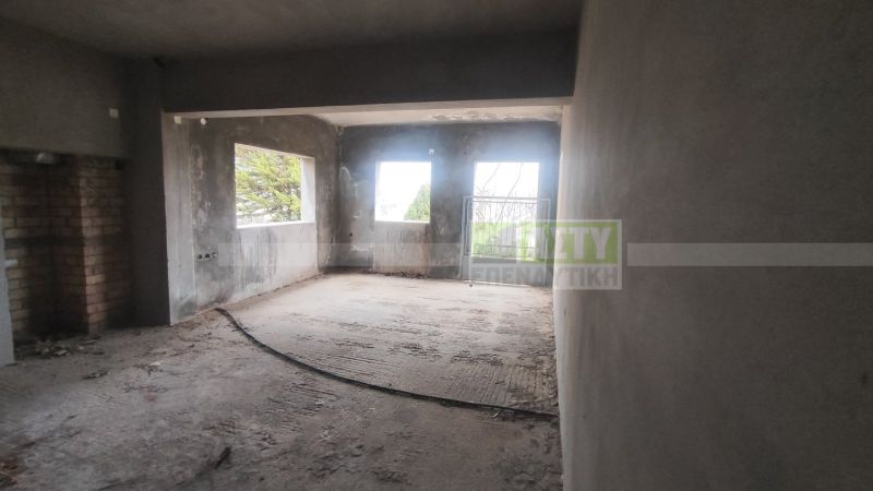 Ημιτελής ανεξάρτητη κατοικία ισογείου σε διπλοκατοικία, και οικόπεδο 336 τ.μ. Είναι διαμορφωμένο σε κατοικία 97 τ.μ με αποθήκη ισογείου μεσοτοιχία 33 τ.μ, βεράντα, αυλή, κήπος, πανω από 100 τ.μ και πάρκινγκ 42 τμ. Διαθέτει δύο υπνοδωμάτια, αλλά μπορεί να διαμορφωθεί τρίτο μειώνοντας στο μισό τα τ.μ της αποθήκης.