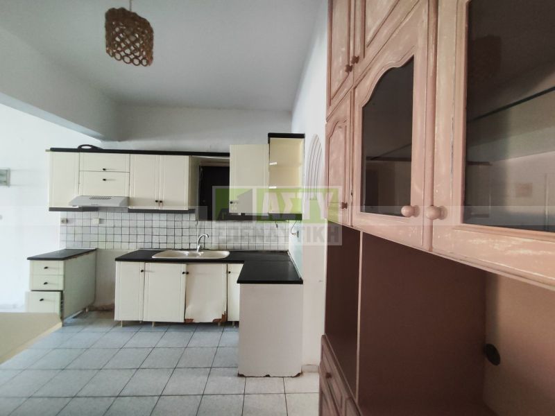 For sale near the church of Agios Nikolaos in Halikarnassos. Ground floor apartment of 80 sq.m, with a large enclosed backyard for exclusive use. It has an open plan kitchen-living room, two bedrooms, bathroom, solar panel and needs renovation. Year of construction 1980. Energy class H.