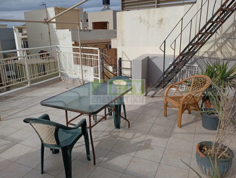 In the center of Heraklion and 200 m. from the sea, 2nd and 3rd floor maisonette, 120 sq.m. On the 2nd floor there is a spacious living room with balcony and sea view, independent kitchen, a bedroom with balcony and a w/c. On the 3rd floor there are 2 bedrooms with balcony, 1 bedroom with access to a spacious and comfortable terrace with sea view, as well as a bathroom with toilet and bathtub. The apartment is renovated, with a new kitchen, new solar batteries, new aluminum doors, new frames and windows. It does not have an elevator and is free of shared charges. Energy class E.