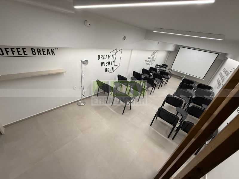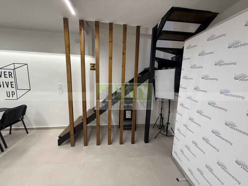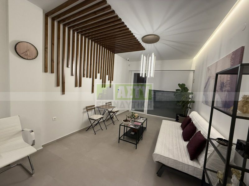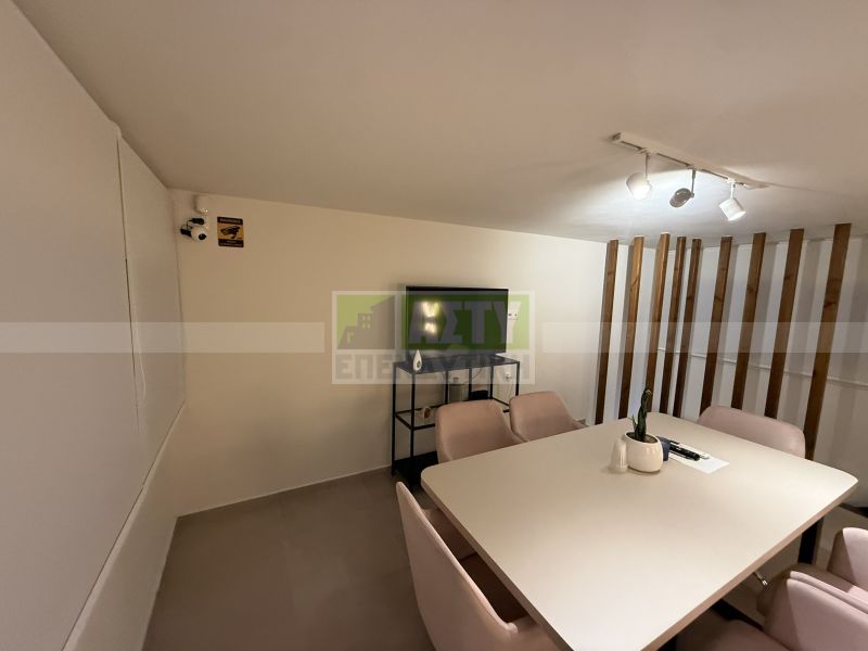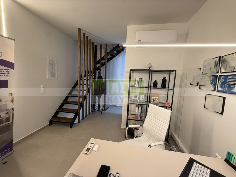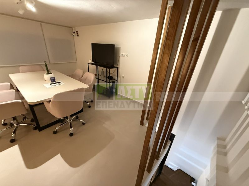 Excellent and fully renovated office space of 109 sq m, in the city center with underground parking space, steps from Evans and Averof. It consists of a basement of 42 sq m where a seminar space is arranged, a ground floor reception area of 42 sq m, office space, a loft of 25 sq m meeting room, kitchenette and bathroom. Very bright and practical office, is given fully furnished and electrically equipped, with cameras, alarms, three a/c, water heater. Minimum common shared around 10€. Energy class C.