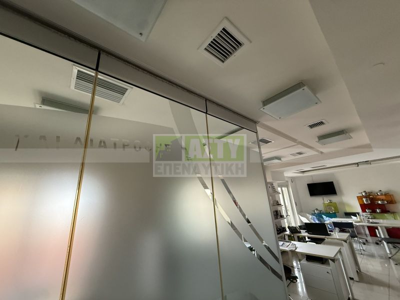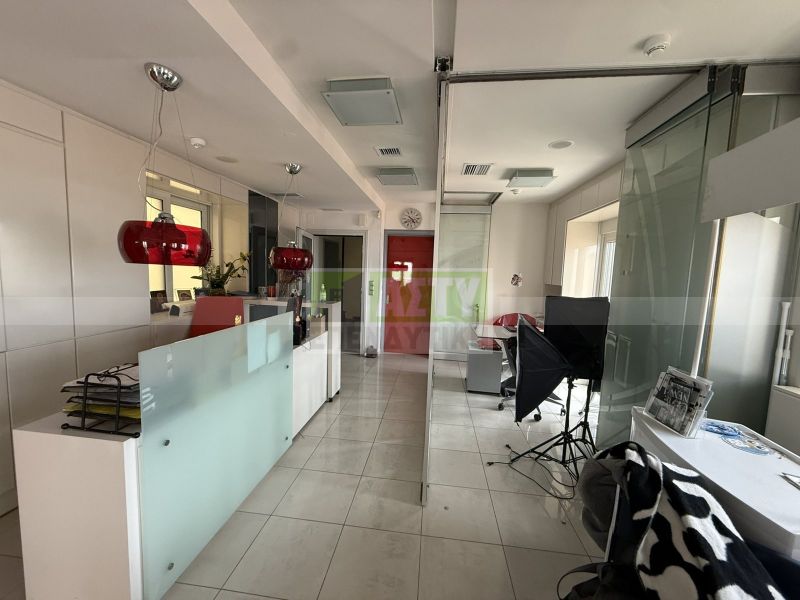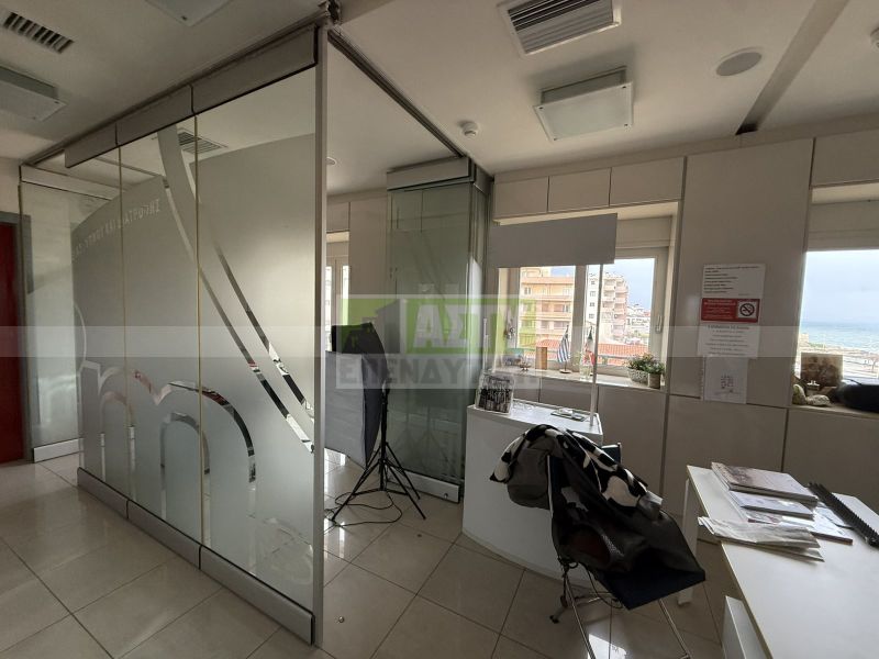 Near the beach. 3rd floor corner office for rent, in an excellent location. This is a recently renovated 80 sq m single office in excellent condition. It has energy-efficient windows, autonomous cooling and heating, balconies all around, elevator, hidden lighting, spacious WC with shower, kitchenette, cabinets in various parts of the office, structured cabling, internal accordion-type partition where it can isolate an office space. Excellent case. Energy class E.